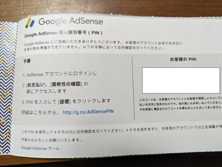 • AdSense の住所確認は PIN 到着後に簡単に完了