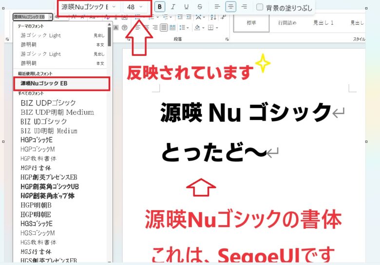 源暎フォントは、WordやExcel、ペイントにはすぐ反映され、サムネ作りにもぴったり。