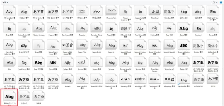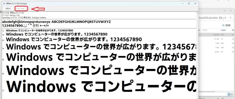 そこで、エクスプローラーからフォントファイルを開き、インストール状況を確認しました。