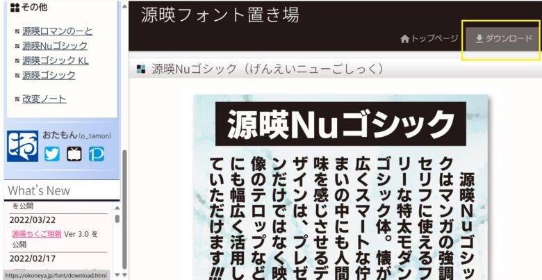 ここから目的の「源暎 Nu ゴシック」を見つけたので、さっそくダウンロードします。