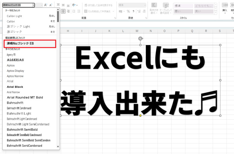 Excelで確認しようと思ったらフォント一覧に出てこない…。