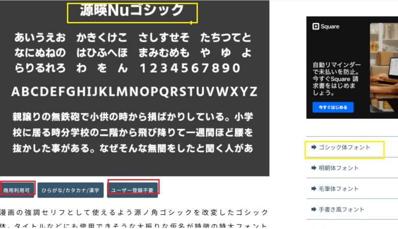 調べてみると、商用可のフォントをまとめて紹介しているサイトがとても便利でした。