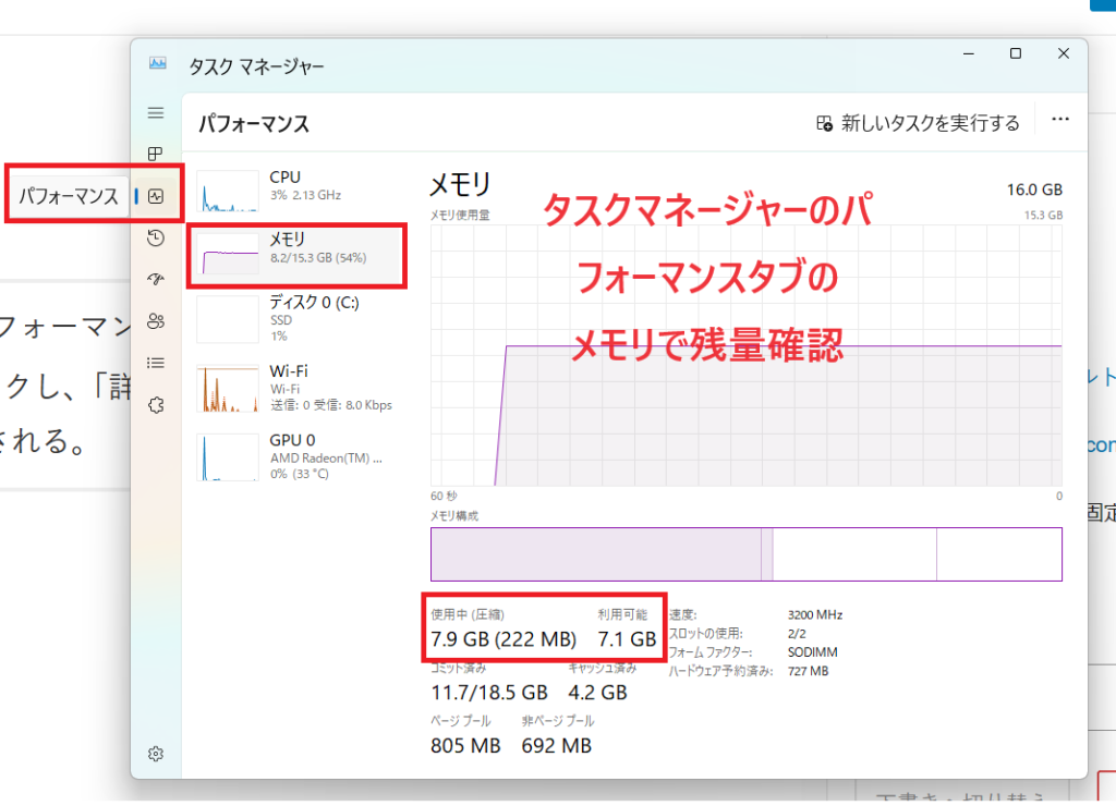 🪟 Windows 11|メモリ残量の確認方法(私の場合)