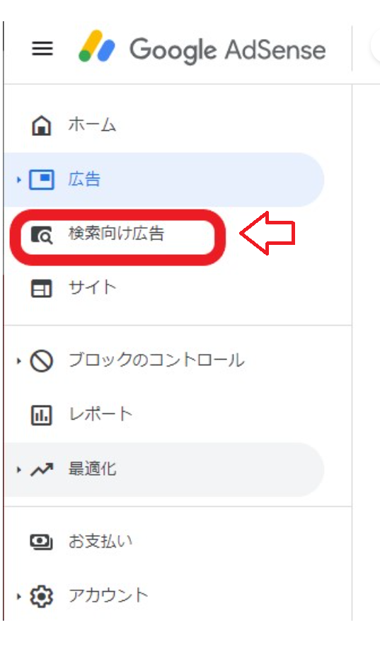 「検索向け広告」メニューがない - 検索ボックスに
