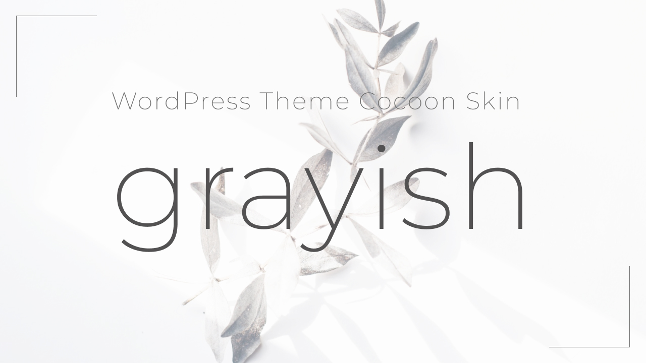 grayish(グレイッシュ)は、無料で高機能なWordPressテーマ、Cocoonのスキンです。画面いっぱいに表示されるメインビジュアル、シンプルなデザイン、独自のテーマカスタマイザーが特徴です。どなたでも自由にご使用いただけます。