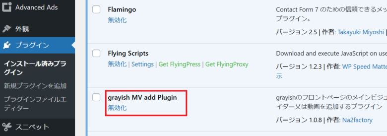 ここからプラグインをダウンロードします(先ほども触れましたが普通のプラグインのようにダッシュボードのプラグインで新規プラグインを追加してもgrayish MV add Pluginは出てきません。)