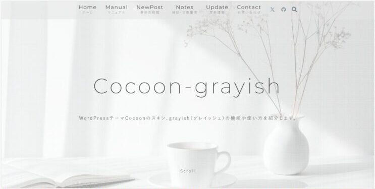 Cocoonの新しいスキン「grayish(グレイッシュ)」に変更し、フロントページのメインビジュアルをスライダー表示にしてみました。