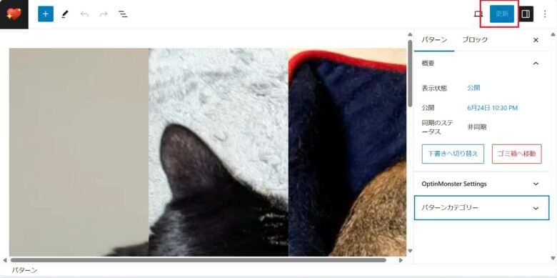 画像を置換後、パターンの「更新」をクリックして管理画面に戻ってください。