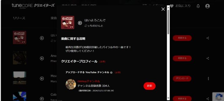 そんな中、チャンネルが収益化条件を満たしていなくても収益を得られる可能性がある「TuneCore JapanのYouTubeコンテンツ収益化サービス」を知りました。