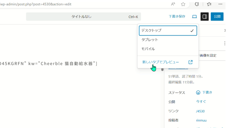 ここまでやったら新しいタブでプレビューしてみると