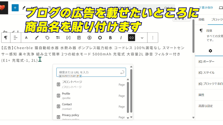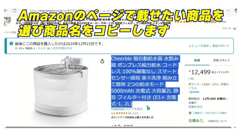 5、Amazonの商品ページURLを貼る