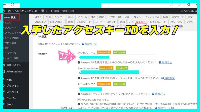Amazon商品紹介リンク用の認証機能を取得&登録方法です。Amazonアソシエイトからアクセスキーとシークレットキーを作成登録する方法です。