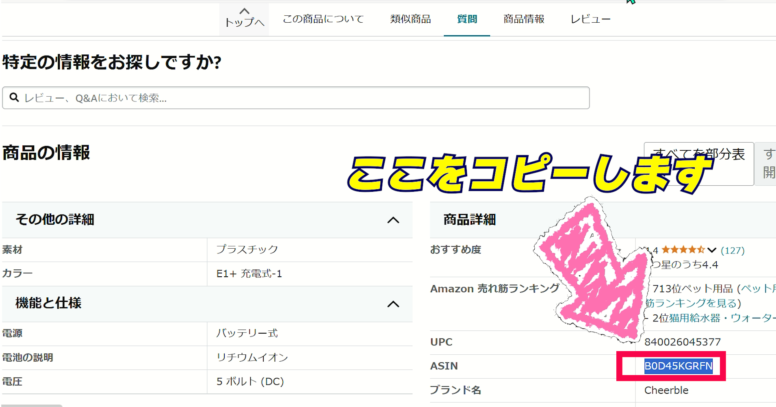 4、商品ページの ASINコードをコピー