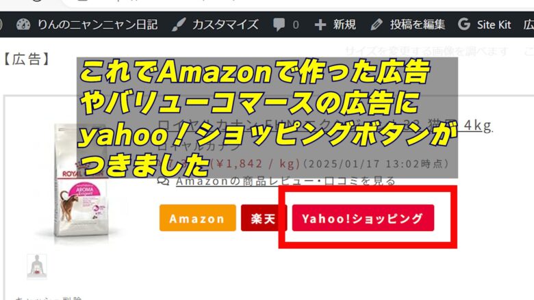 これで、Amazonリンクを作ると同時にYahooボタンも作成できます。