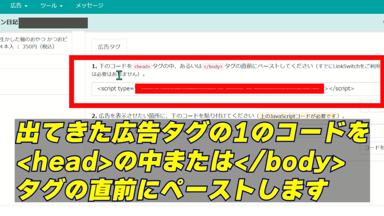 作った広告をブログに付ける