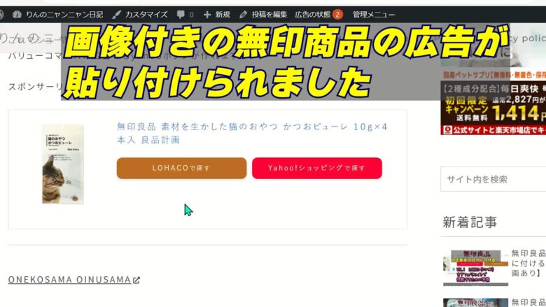 これで画像付きの無印商品の広告をブログに付けることが出来ました。
