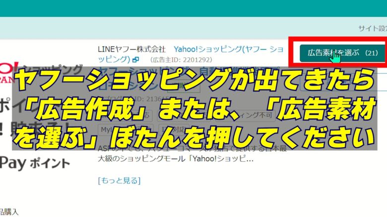 2、表示されたら「広告作成」または「広告素材を選ぶ」をクリック