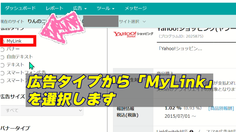 5、左側の広告タイプの中からMyLinkを選択