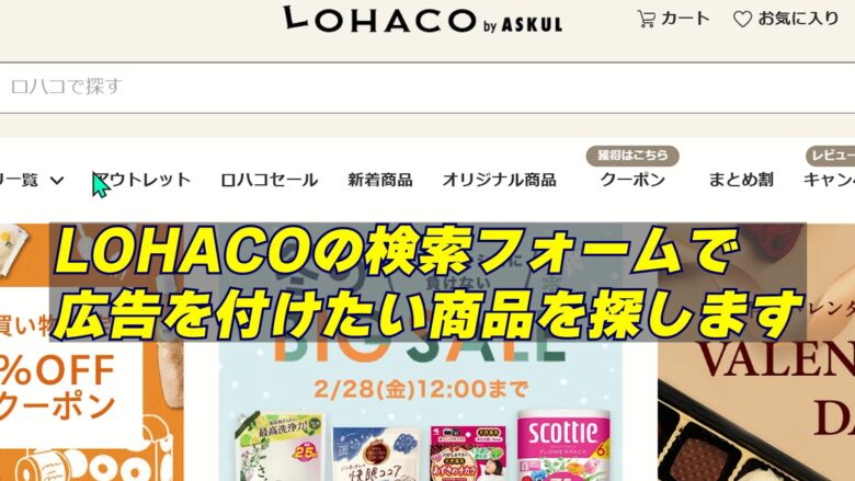 LOHACOの検索フォームで広告を付けたい商品を探します