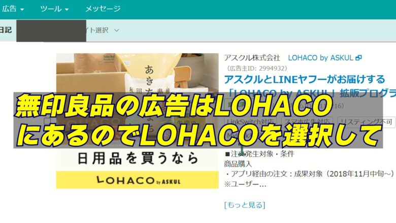 - 無印良品の広告はLOHACO経由でブログに貼れる