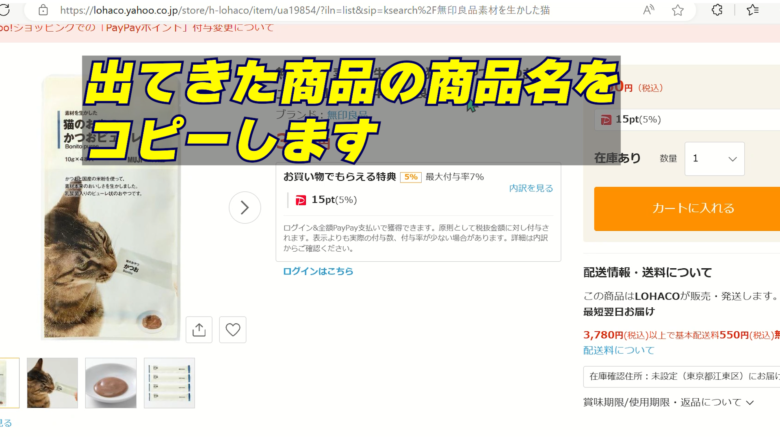 3、商品名をコピー