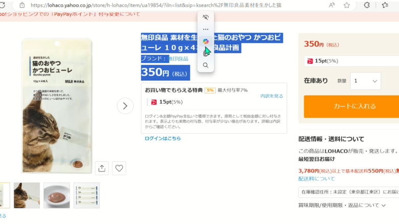 2、LOHACOに移動し、広告を付けたい商品を検索