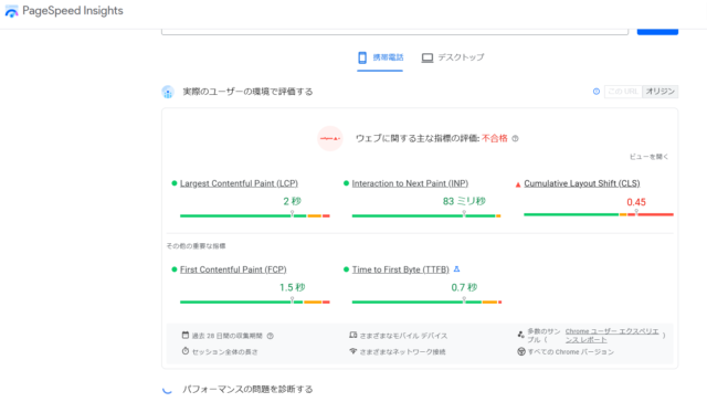 こんな感じで最初に開いた時よりも下にズレるよ!と言うモノですね私のはパソコンもモバイルも0.1超で下にずれますよ~というもの。原因はAdSenseの広告が出てくるのにその分のスペースを最初から開けていなかったり、広告のサイズを指定していないことみたいなんです。