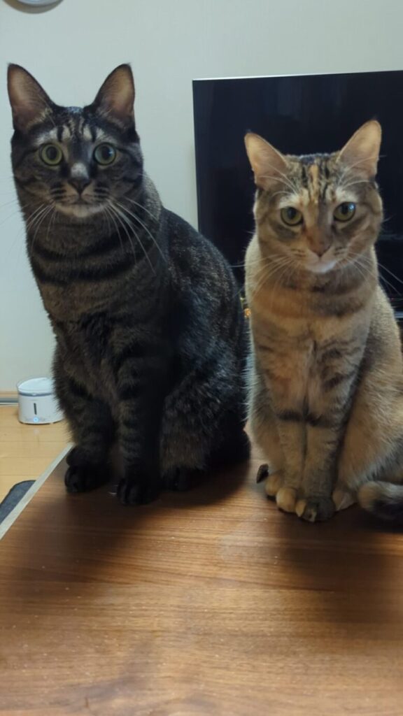 「この2匹が一緒におもちゃで遊んでいるところをリアルに描いてください」