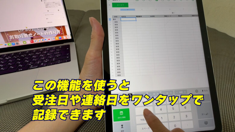 この機能を使うと、受注日や連絡日をワンタップで記録できます。