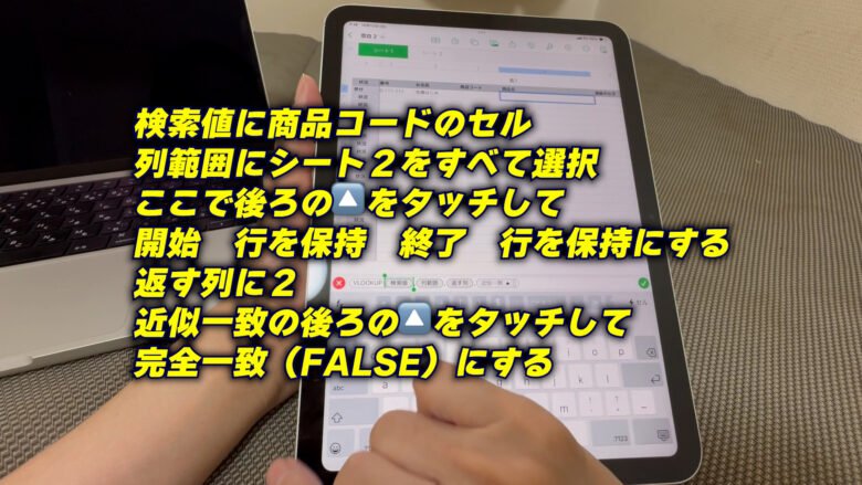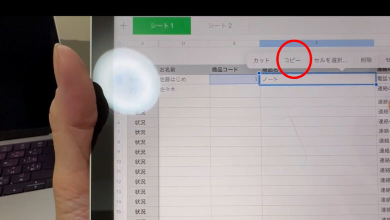 VLook関数のコピーは,関数が入っているセルをタップして.上にコピーが出たら選択します