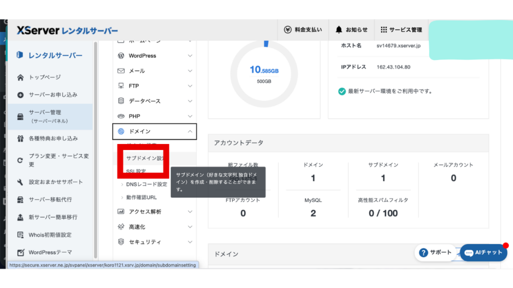 詳細は、「ファイルのアップロード先について」をご参照ください。なお、ご利用サーバーにサブドメイン設定が反映されるまで半日程度かかる場合があります。