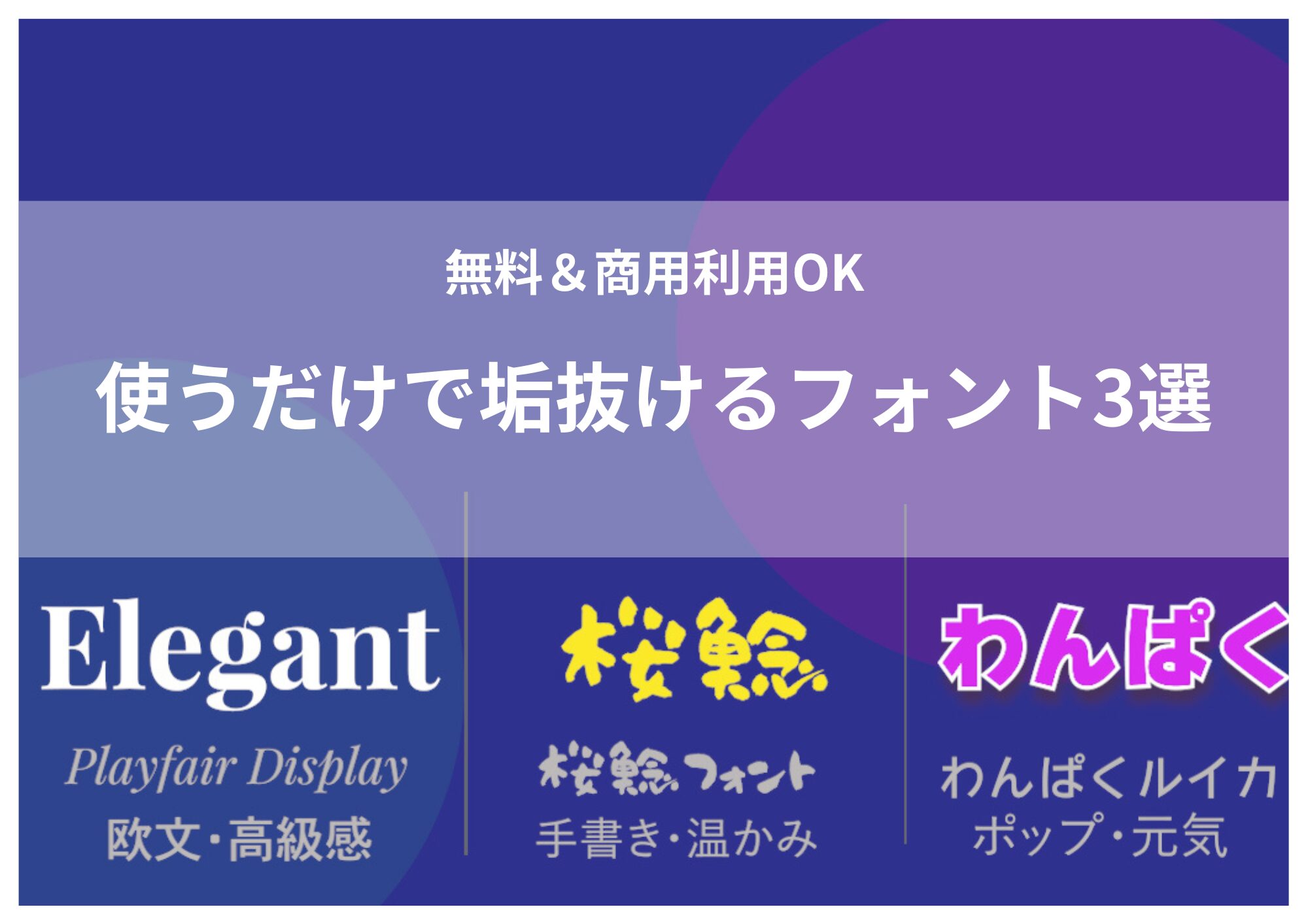 すべて無料で使えるフォントで、ブログのアイキャッチやサムネ、SNS画像などにすぐ活用できます。(※本文フォントとして使えるかはフォントにより異なります)