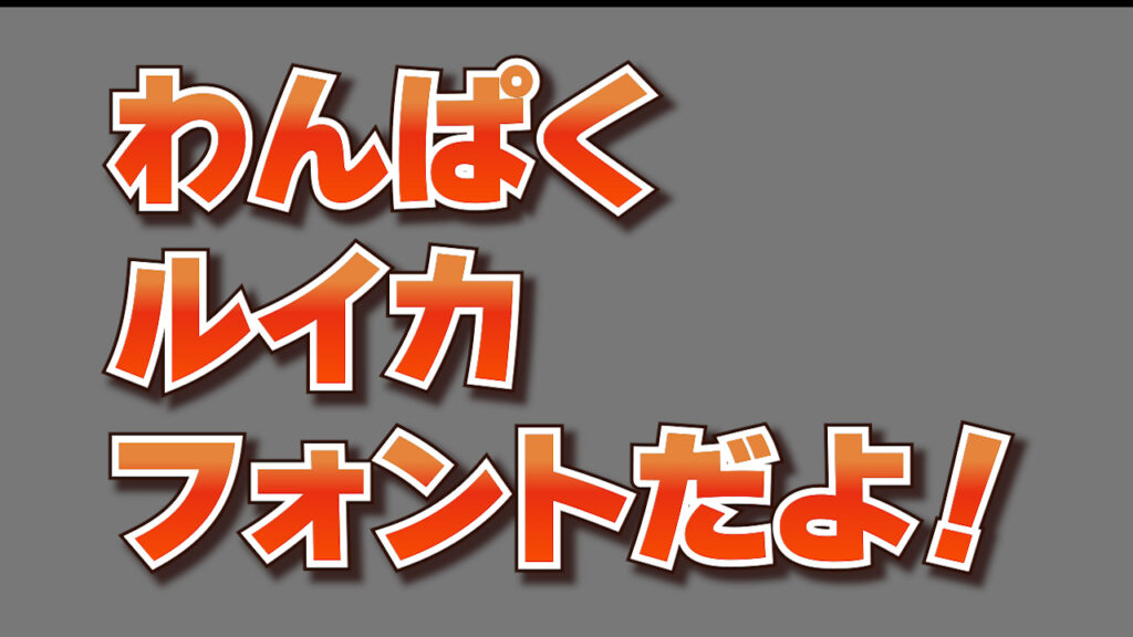 やや子どもっぽさを感じるデザインですが、その分インパクトがあり、サムネイルやバナーなど“目を引きたい場面”で強い効果を発揮します。ひらがな・カタカナ・英数字・記号などが収録されており、カジュアル用途には十分対応できます。